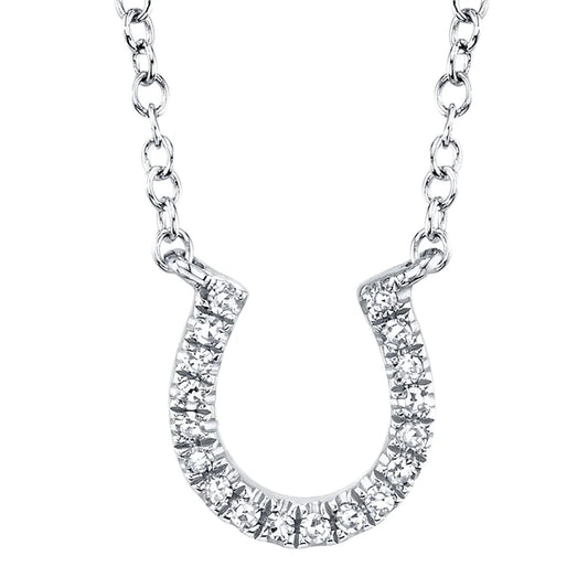 14K Gold 0.06 CT Diamond Lucky Horseshoe Necklace