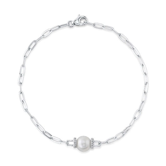 14K Gold 0.07 CT Diamond And Pearl Bracelet In Womens Link Chain Round Cut