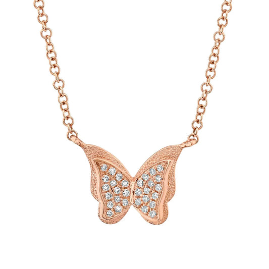 14K Gold 0.06CT Diamond Butterfly Necklace Round Natural Women's Pendant
