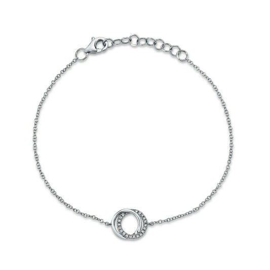 14K Gold 0.07 CT Diamond Love Knot 2 Circle Bracelet Round Cut Natural Intertwined