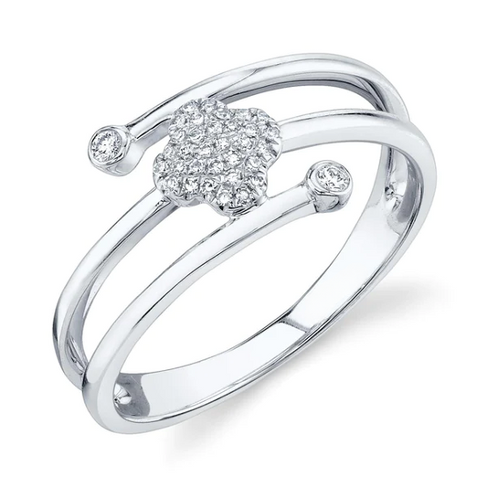 14K Gold 0.10 CT Diamond Clover Wrap Spiral Ring