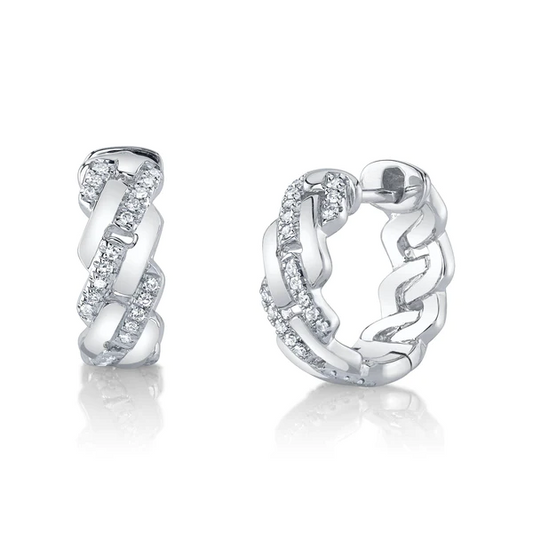 14K Gold 0.10 CT Diamond Huggie Link Earrings