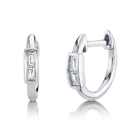 14K Gold 0.10 CT Baguette Diamond Huggie Earrings