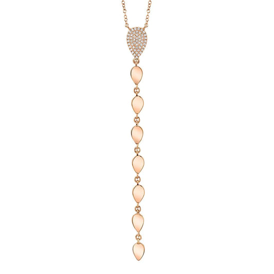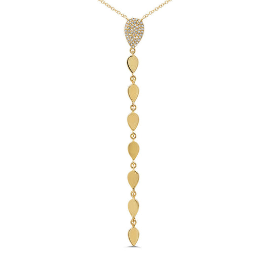 14K Gold 0.11 CT Diamond Lariat Necklace Pear Teardrop Pave Set Round Cut Natural