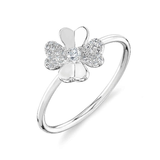 14K Gold 0.11 CT Diamond Clover Ring Round Cut Cocktail Right Hand Natural