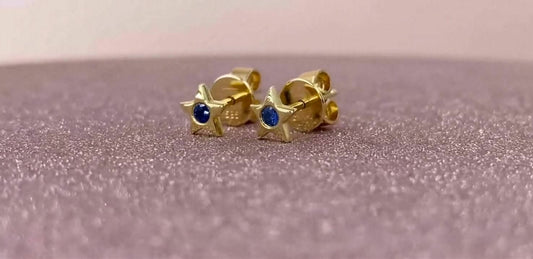 14K Gold 0.10 CT Blue Sapphire Star Stud Earrings Round Cut Natural