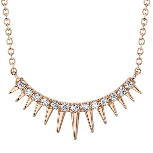 14K Gold 0.12CT Diamond Spike Curved Necklace Triangle Spikey Round Cut
