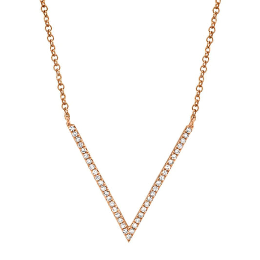 14K Gold 0.12 CT Diamond Natural Round Cut V Pendant Necklace