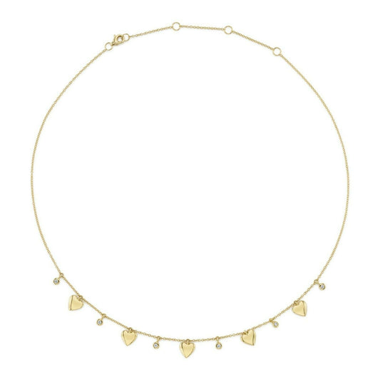 14K Gold 0.12CT Diamond Heart Necklace Bezel Set Shaker Dangle Round Cut