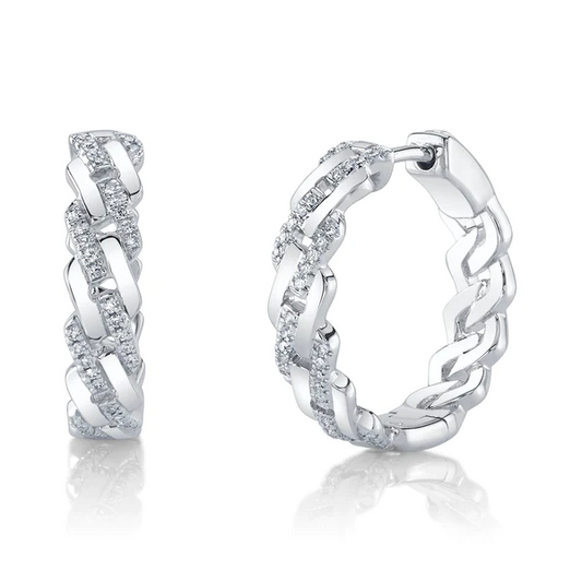 14K Gold 0.16 CT Diamond Link Hoop Earrings