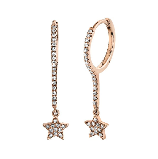 14k Gold 0.17 CT Diamond Star Drop Dangle Huggie Earrings Natural Pave