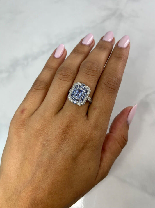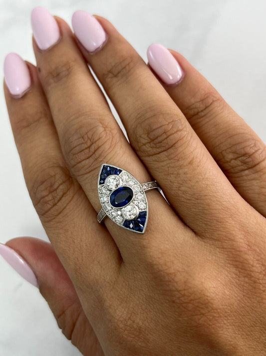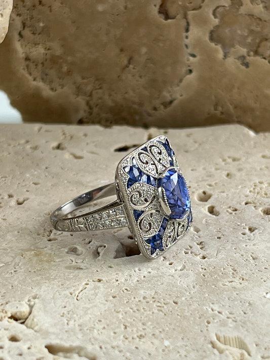 Art Deco Blue Sapphire Diamond Platinum Ring Natural
