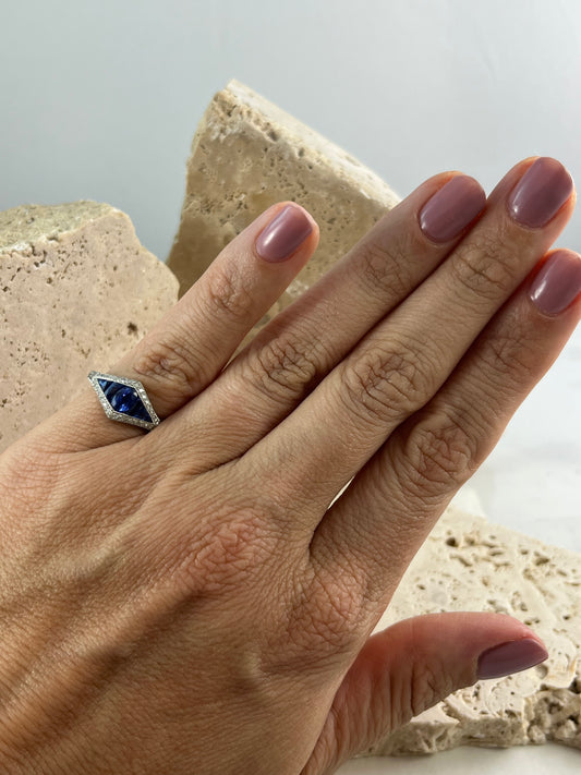 Art Deco Inspired Oval French Cut Sapphire Diamond Ring