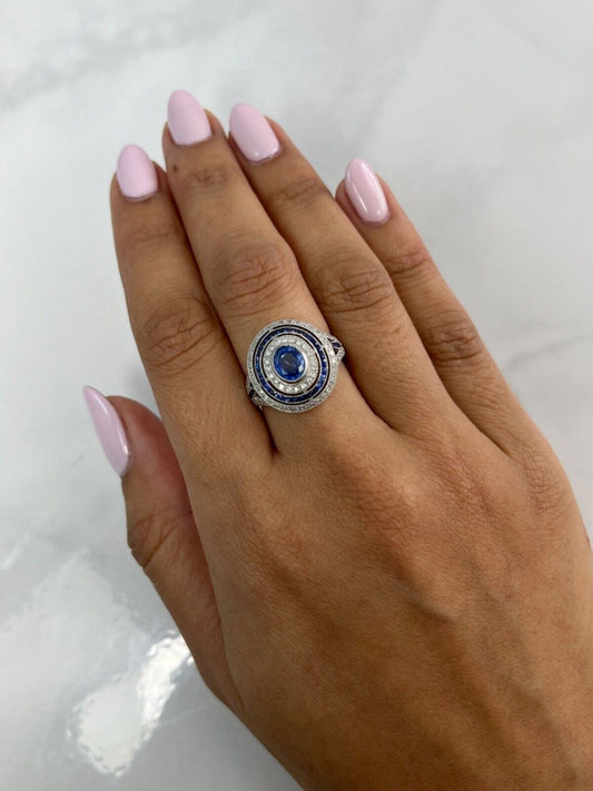 Art Deco Blue Sapphire Diamond Oval Cocktail Ring