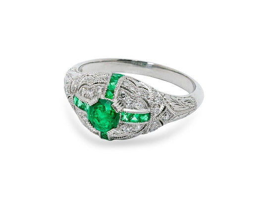 Art Deco Diamond And Emerald Platinum Ring Antique Inspired Natural