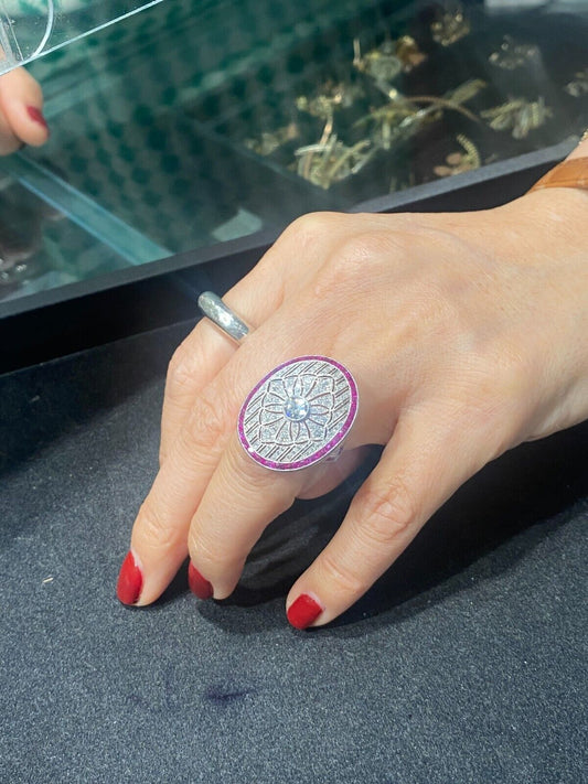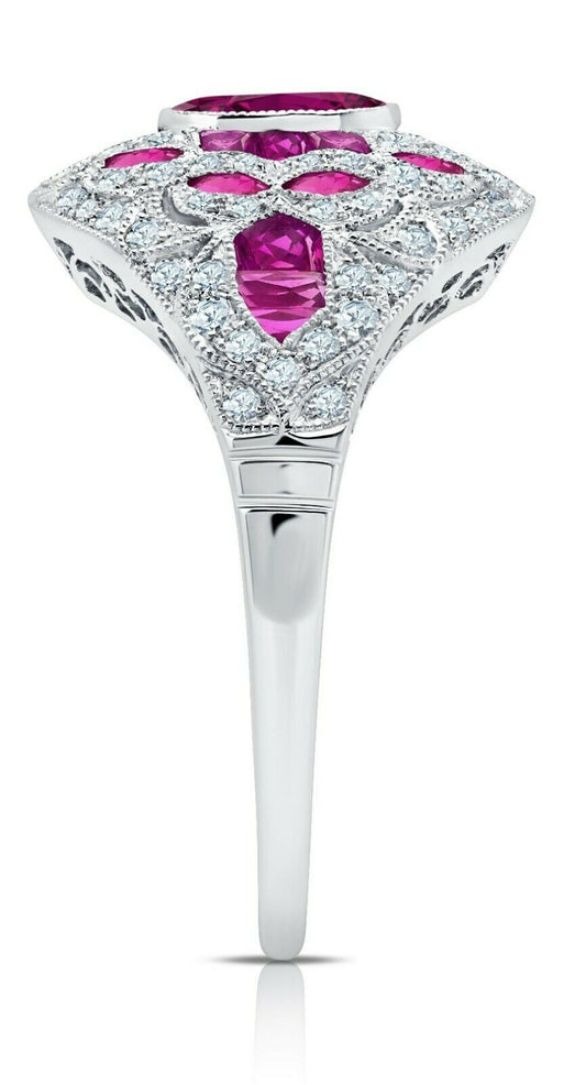 Oval Ruby Diamond Ring Platinum Cocktail Art Deco Handmade