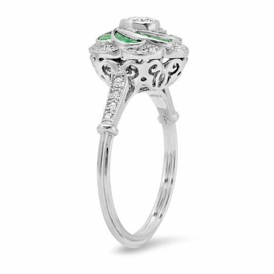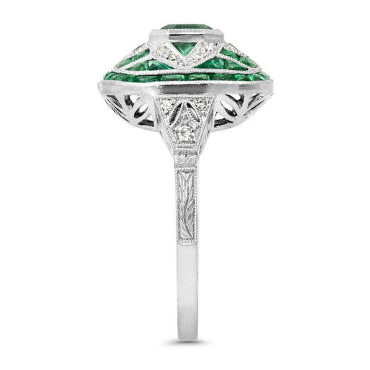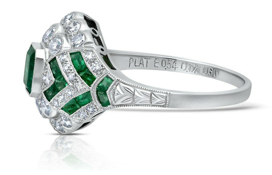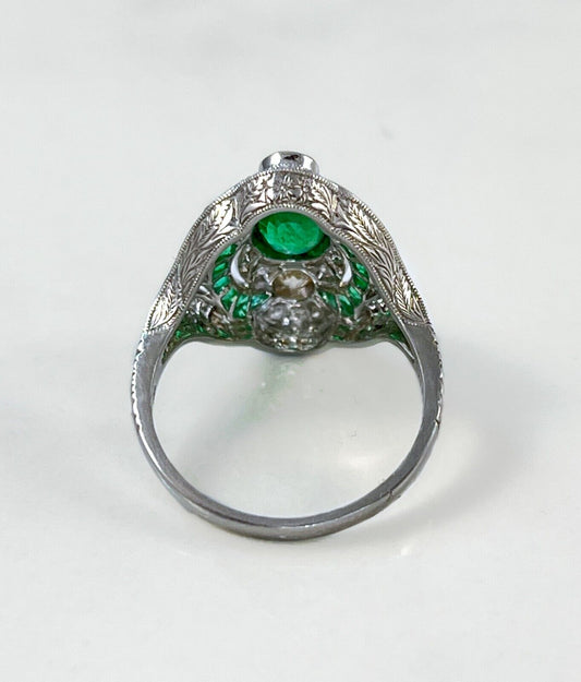 Art Deco Emerald And Diamond Platinum Ring Antique inspired