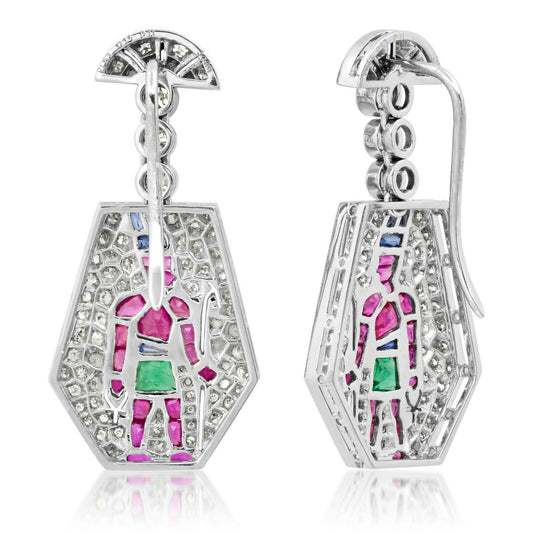 Diamond Egyptian Pharaoh Ankh Platinum Earrings Multi Gemstones Certified Natural