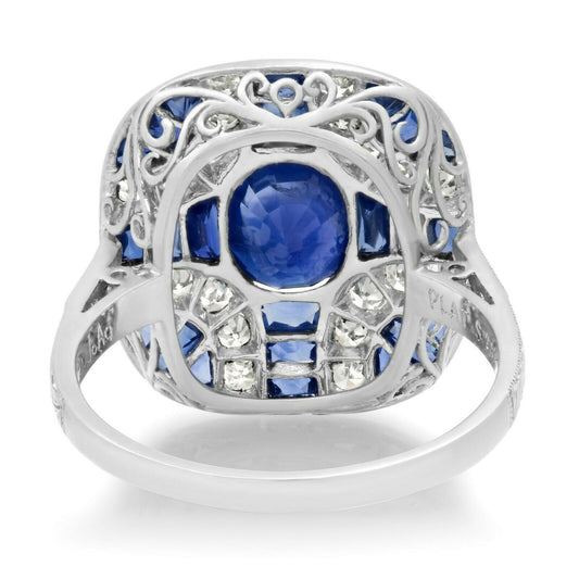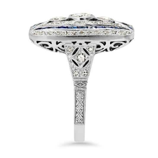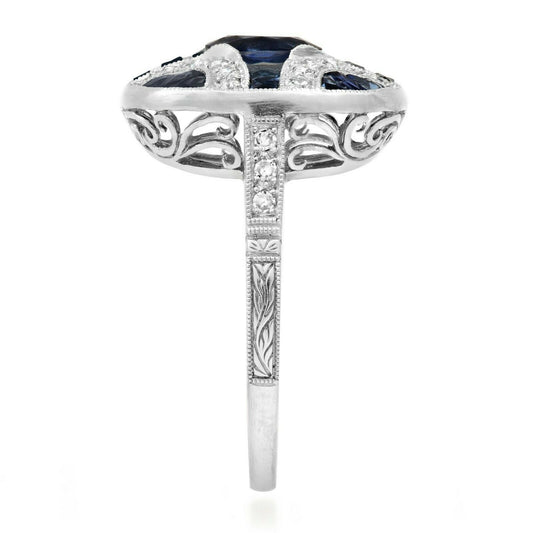 Art Deco Blue Sapphire Diamond Platinum Ring