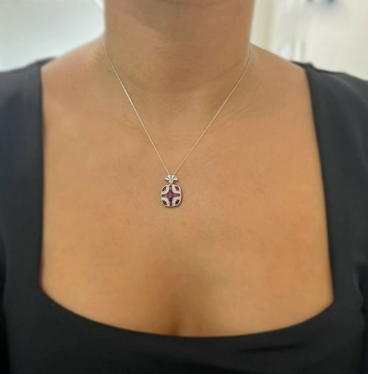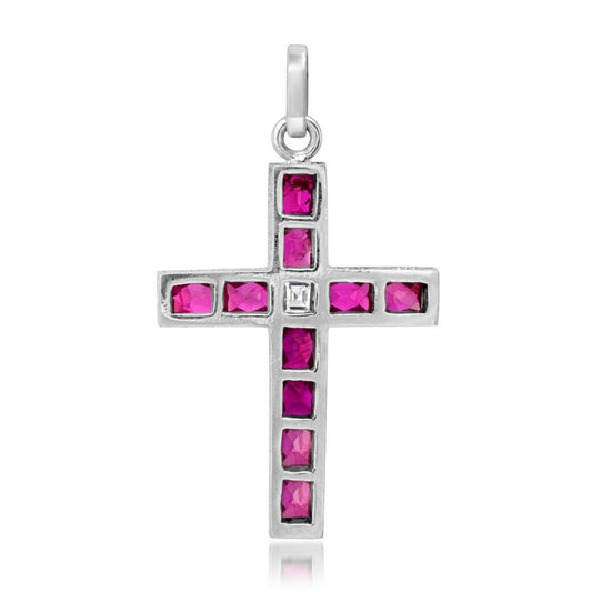 Art Deco Ruby Diamond Cross Platinum Pendant Necklace Chain Included