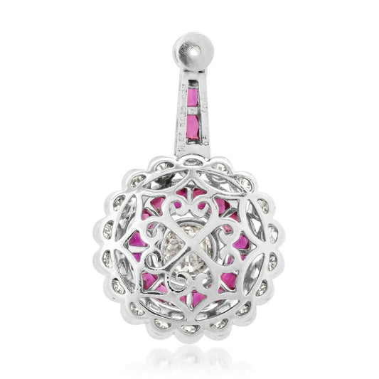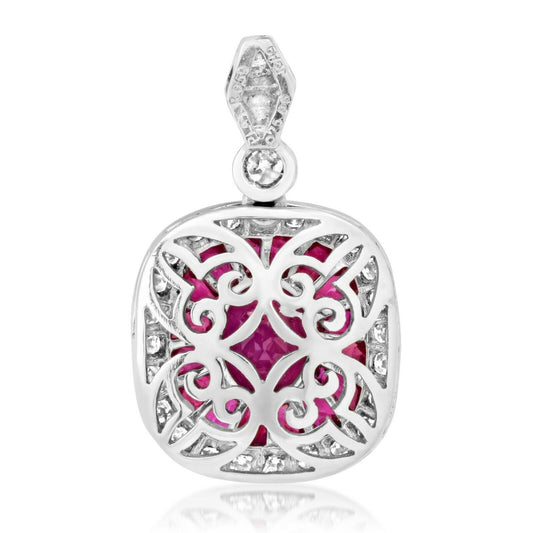 Art Deco Ruby Diamond Platinum Pendant Necklace Natural Chain Included