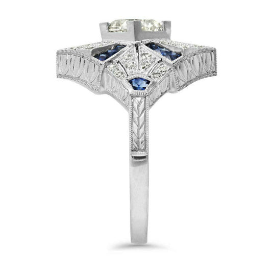 Art Deco Diamond Blue Sapphire Platinum Ring Handmade Natural