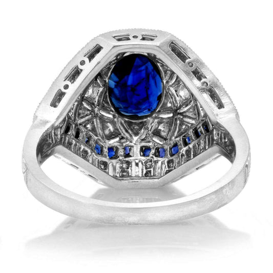 Art Deco Oval Sapphire Diamond Platinum Handmade Ring
