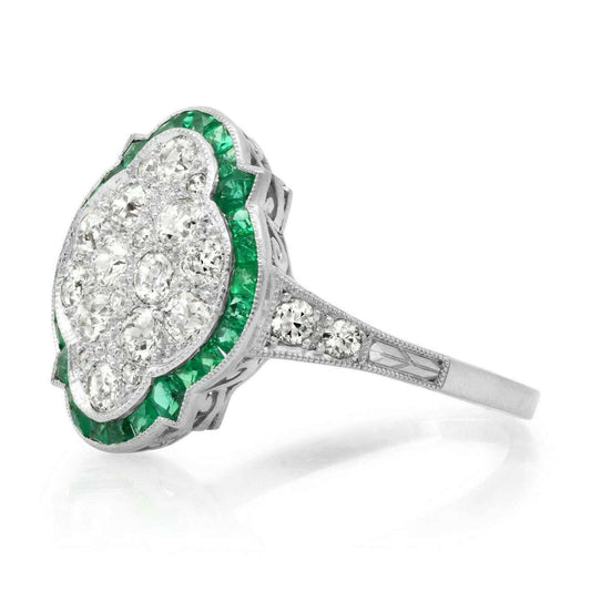 Art Deco Diamond Emerald Platinum Statement Ring Natural