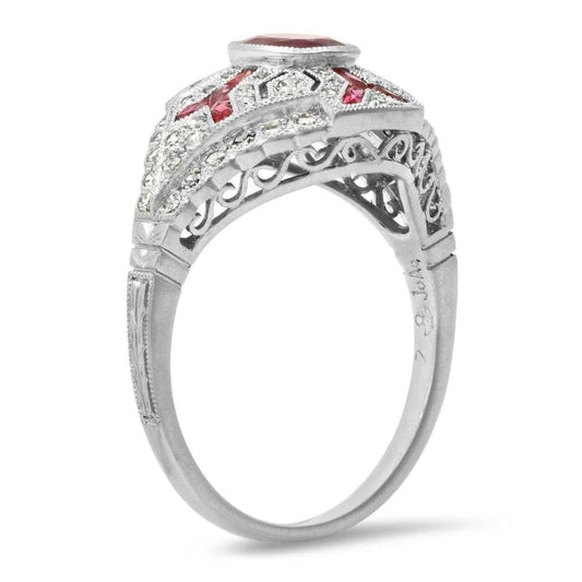 Art Deco Oval Ruby Diamond Platinum Engagement Ring
