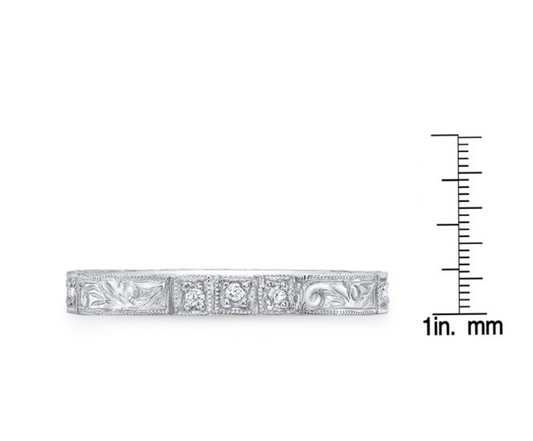14K White Gold 0.10 CT Diamond Band Ring Engraved Paisley Carved Wedding Anniversary