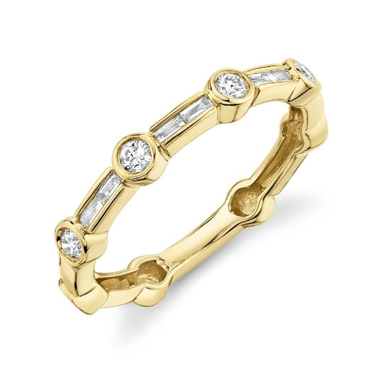 14k Gold 0.28 CT Baguette Round Diamond Dainty Thin Band Ring Stackable