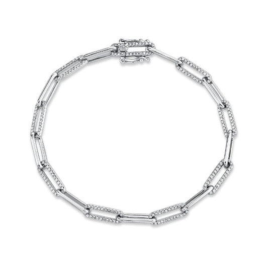 14K Gold 0.73CT Paper Clip Link Diamond Bracelet Women's Natural Round Cut