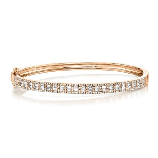14K Gold 1.49 CT Baguette Diamond Bangle Bracelet Stackable Natural