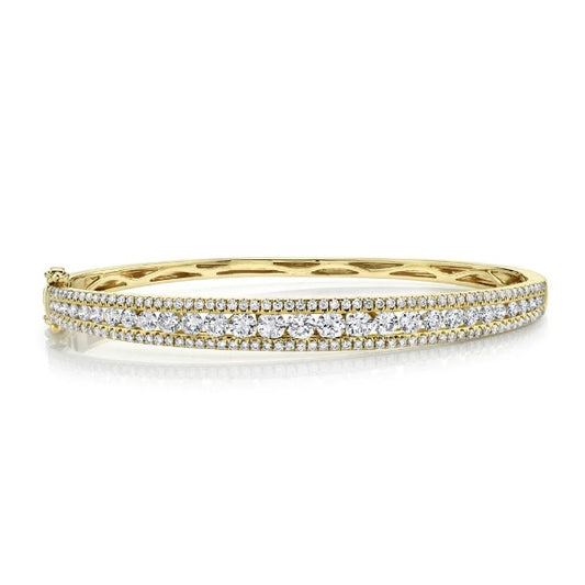 14K Gold 2.75 CT Channel Set Diamond Bangle Bracelet Round Cut Natural Size Small