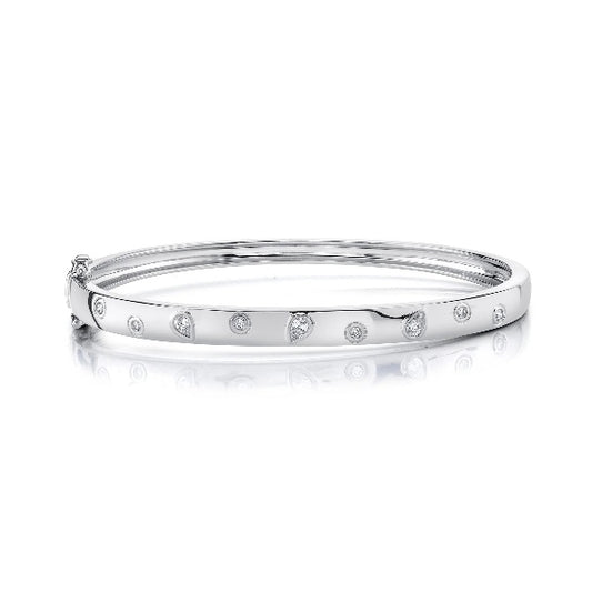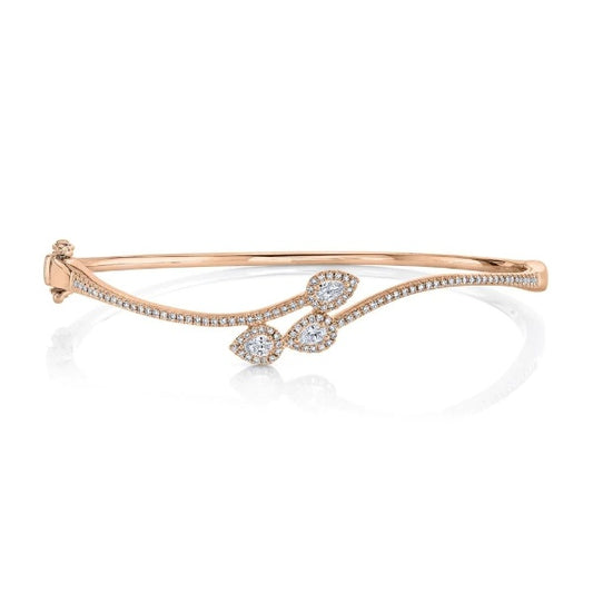 14K Gold 0.27 CT Pear Round Diamond Bangle Floating Bezel Bracelet