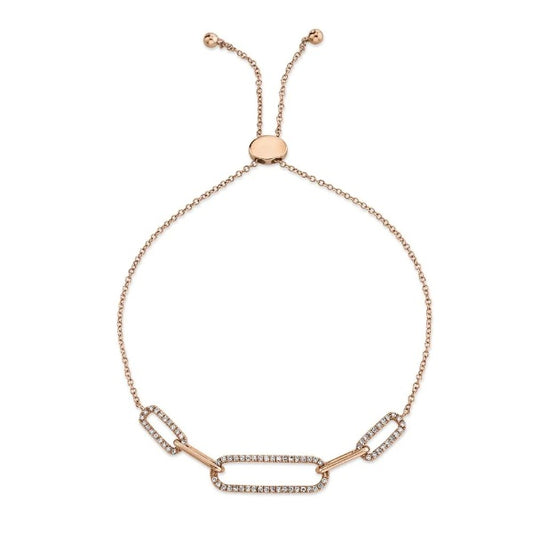 14K Gold 0.24 CT Diamond Bolo Bracelet Round Cut Natural Cylinder Halo Link