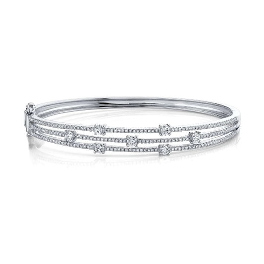 14K Gold 1.22 CT Floating Diamond Bangle 3 Row Bracelet Round Cut Natural