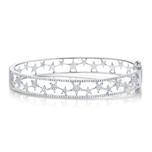 14K Gold 0.71 CT Diamond Star Bangle Bracelet Round Cut Natural Women's Clasp Lock