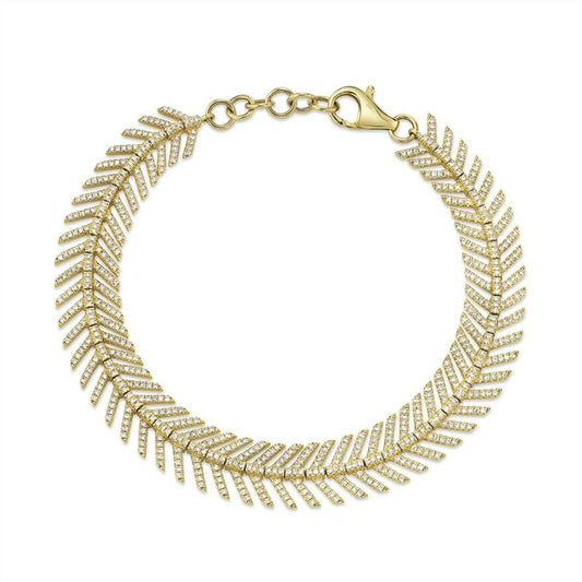 14K Gold 1.43 CT Diamond Feather Bracelet Womens Round Cut Natural Flexible