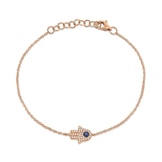 14K Gold 0.17 TCW All Seeing Eye Blue Sapphire Hand Hamsa Diamond Bracelet