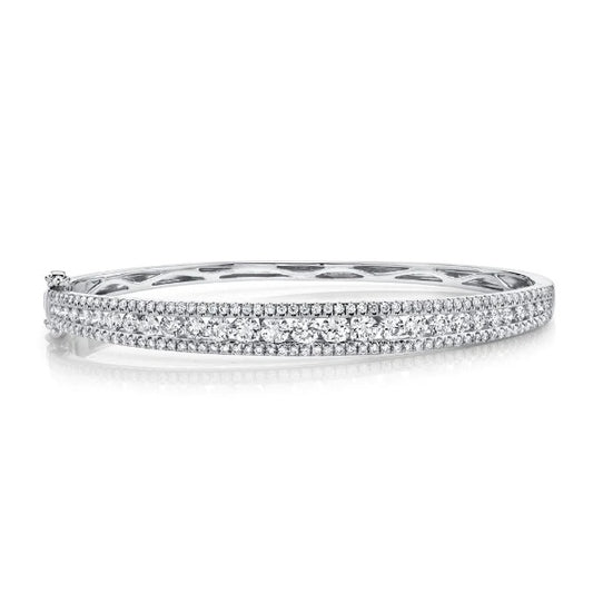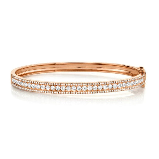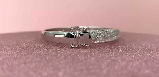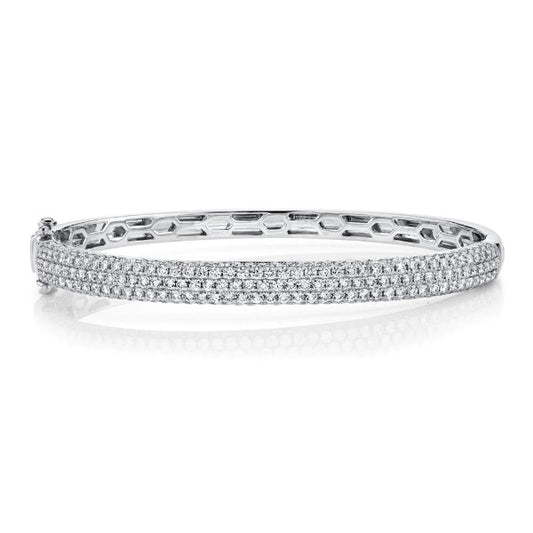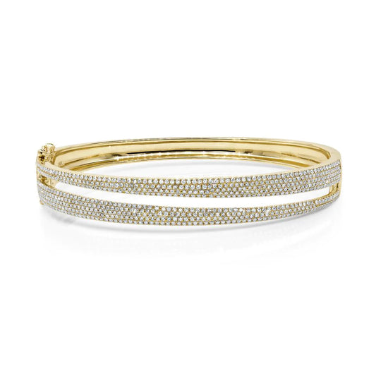 14K Gold 2.97 CT Diamond Pave Bangle Bracelet Round Women's Small Natural
