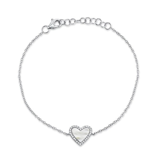 14K Gold 0.56 CT Mother Of Pearl Diamond Heart Bracelet Natural Charm Jewelry