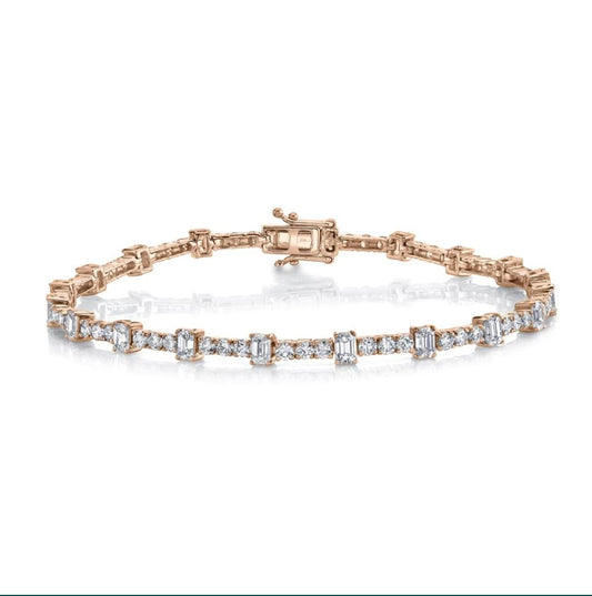 14K Gold 5.04 CT Emerald Cut Diamond Tennis Bracelet Round Certified Natural