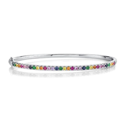 14K Gold 1.18 CT Multi Color Gemstone Rainbow Bangle Bracelet Round Cut