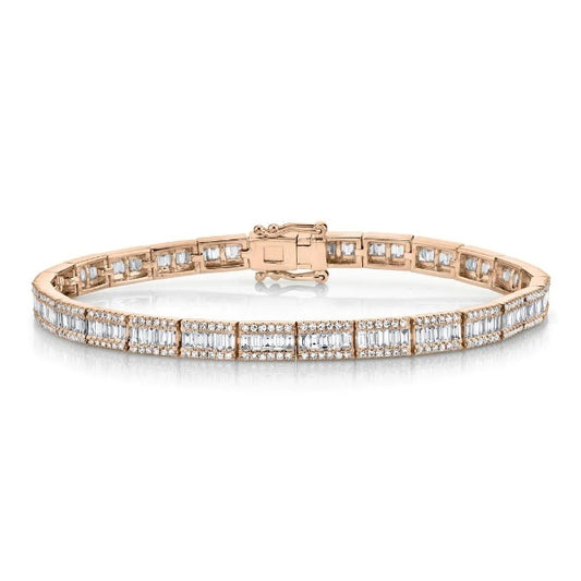 14K Gold 2.75 CT Baguette Cut Diamond Bracelet Womens Round Natural Channel Set