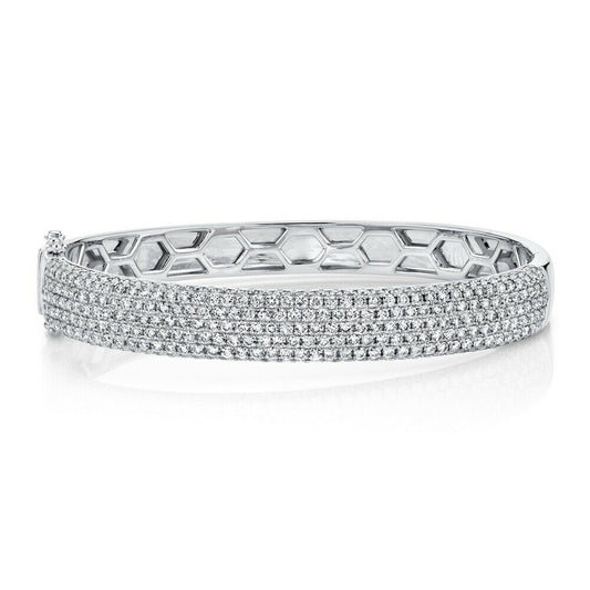 14K White Gold Wide Diamond Pave Bangle Natural Round Cut Women's Small 4.21 CT