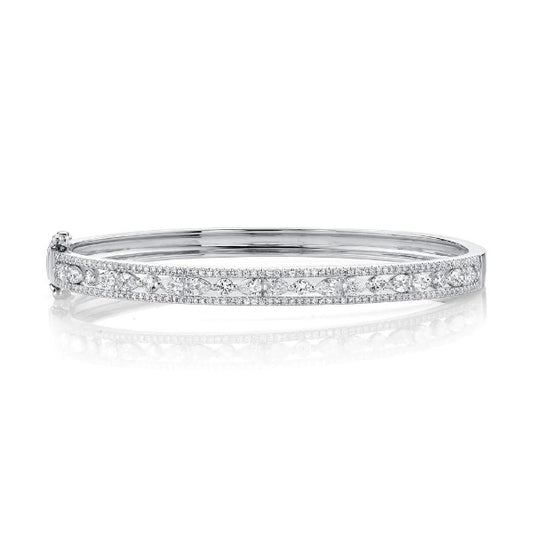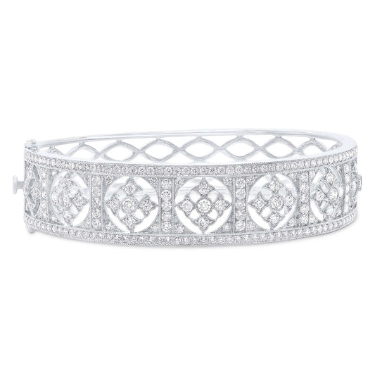 14K Gold 3.42TCW Diamond Victorian Cross Bangle Women's Bracelet Latch Lock