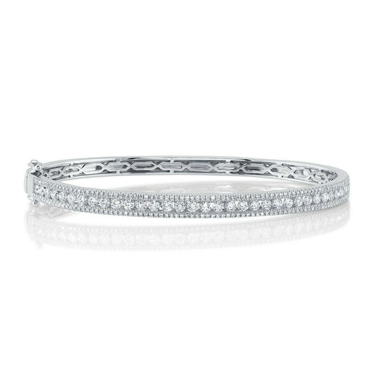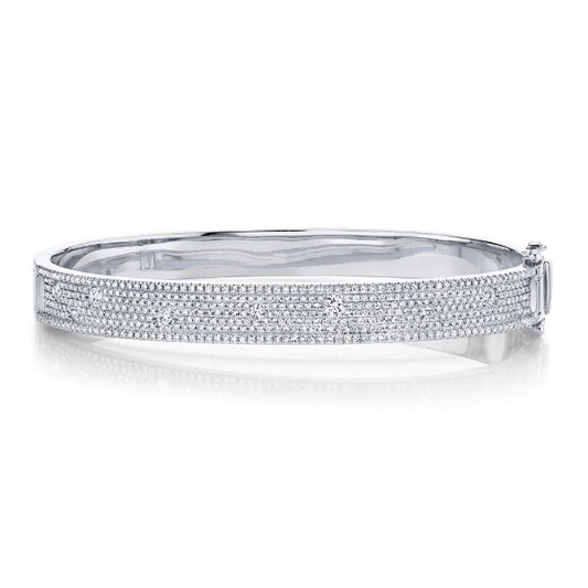 14K Gold 5.24 CT Pave Diamond Bangle Bracelet Womens Wide Clasp Lock Round