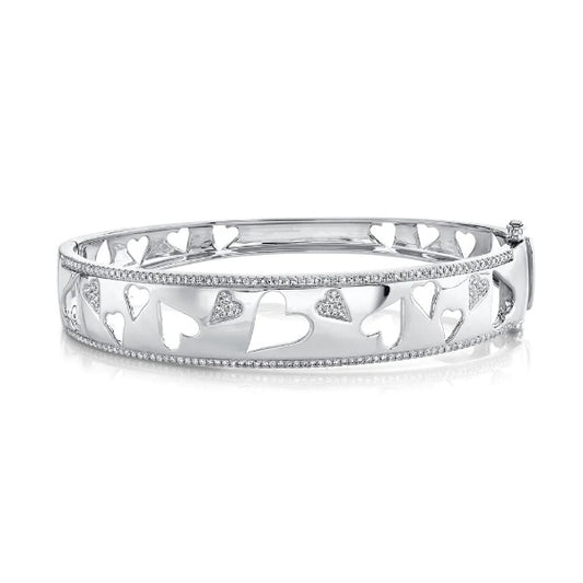14K Gold 0.52 CT Diamond Heart Bangle Women's Wide Bracelet Round Cut Natural