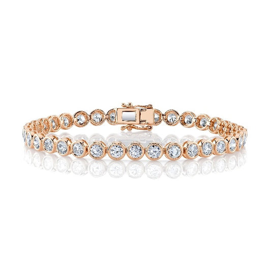 14K Gold 7.00 CT Diamond Tennis Bracelet Bezel Set Round Cut Natural